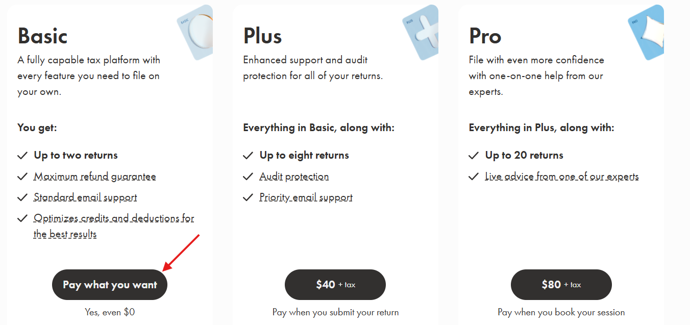 • Wähle den “Basic” plan, weil du ja schließlich eine kostenlose Steuererklärung abgeben möchtest.