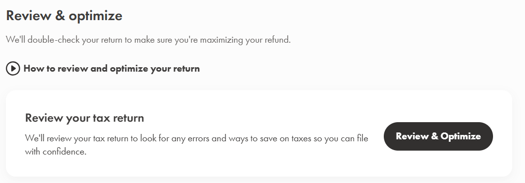 • Wenn du alles in der Taxback Software eingetragen hast, gehe mit “Review & optimize” zum nächsten Schritt.