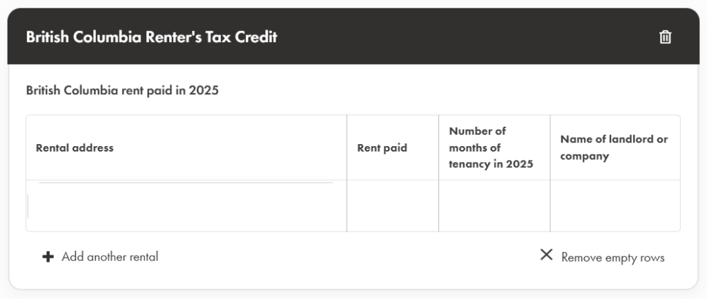 Der BC Renter’s Tax Credit richtet sich an alle Steuerzahler, die im Steuerjahr mindestens 6 volle Monate Miete für eine Wohnung in BC gezahlt haben.