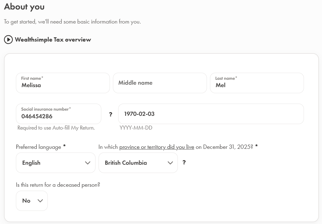 • Gib die kanadische Adresse unter “Mailing Address” ein, wenn du die Steuererklärung online abgeben möchtest.