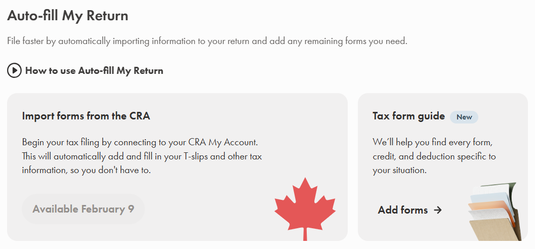 • Ignoriere den Bereich “Auto-fill”, das trifft nicht auf dich zu. Dafür musst du schon ein CRA Account haben.