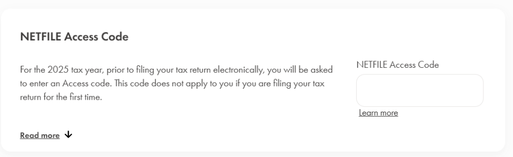 • Ignoriere den “NETFILE Access Code”. Das ist nur wichtig, wenn du schon mal eine Steuererklärung in Kanada abgegeben hast.